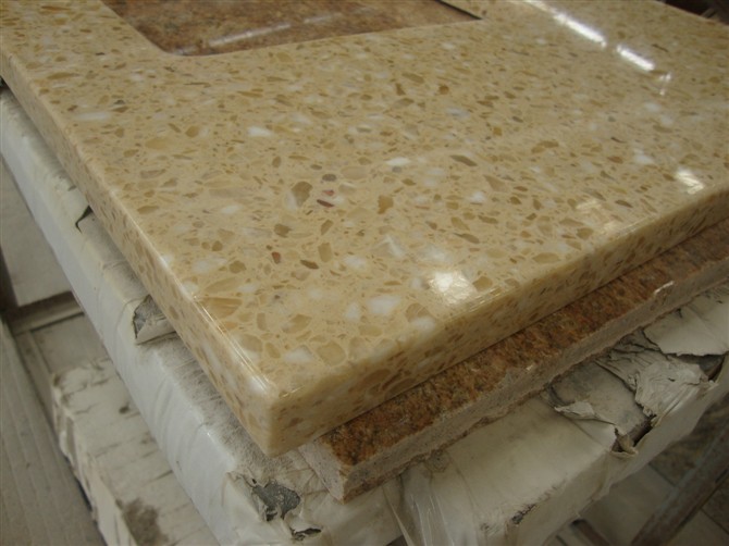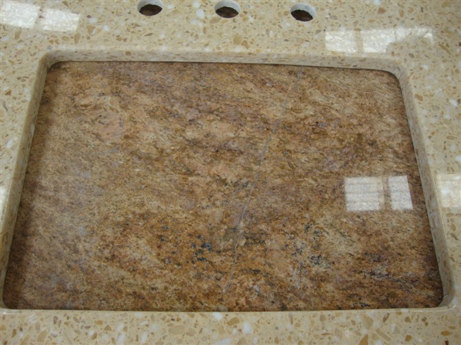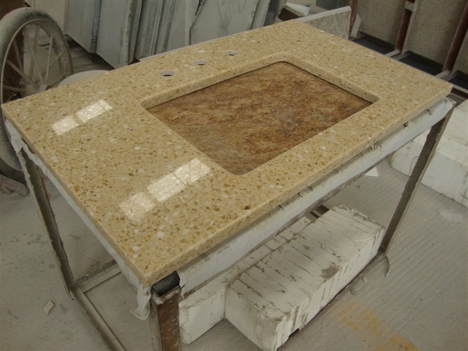 Artificial Marble Bathroom Vanity Manufacturer in China: Beige Artificial Marble Bathroom Vanity Top for kitchen, bathroom, table and and various counter decorations.